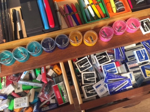 熊本の文房具屋さん 今日は熊本でほぼ日手帳ミーティングキャラバンがあります。 午前中、熊本出身の ミドリネコ舎というとってもかわいい文房具屋さんに連れてきてもらいました。 お店の中のあちこちに引き出しがあって、その中にいろんな文具や雑貨がたくさんの詰まっているので、自由に開けて中を見ながら宝探ししてる気分で買い物できるんです。 店主の伊牟田さんがヨーロッパなどで見つけきた万年筆や不思議なペン、文具、日本の文具や雑貨、熊本の作家さんのアクセサリーなど、ほしいものだらけ!! かわいくて書きやすい万年筆をゲットしました。 大満足でこれからミーティングキャラバン会場に向かいます。 2018/04/08 11:39 |