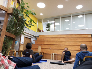 ひな壇前のTK体操 ほぼ日では週に一度、大ホールにて、TKさんこと格闘家の高阪剛さんがほぼ日の乗組員たちに体操を教えてくださっています。 ‥‥が、今日は諸事情により、大ホールが使用不可。 ということで今日は、まわりにいくつものミーティングスペースがある 「ひな壇前」という場所でTKさんに体操を教えてもらいました。 前を見るとみんなが寝転がって、真剣に体操中。 体をひねったり、足をぶらぶらさせたり、ぐいぐい体をほぐしています。 だけど後ろを見ると、手帳チームがこってり真面目な打ち合わせ中。 そのほか、商談に来られたほかの会社のかたが乗組員と談笑していたり、 「あ、今日はここなんだ!」とちょっと笑いながらそばを通っていく乗組員がいたり‥‥。 毎週恒例の気持ちいい体操の時間ながら、妙なカオス感が味わえて、ちょっとおもしろかったです。 (ちなみに「ほぼ日手帳2018」の巻末にはTKさんの体操のページがありますよ〜) 2018/04/13 13:01 |