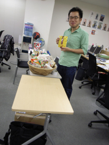 バー・おやつ 9月1日の販売や、書籍の入稿を前にして、コツコツと音がする作業や、脂汗をたらす作業などが増えてきたので、憩いの場が必要である。 われわれは、社内の一角に机をもうけて、そこに、おやつをたんまりと買ってきて、休憩ができるスペースを作った。 名付けて「バー・おやつ」である。 この利点は、ギリギリになってくると、人はだれしも殺気立つのものだが、そんな気配の打ち合わせもこのバーでやれば、おやつがあるために和やかになる、ということである。 さらに、バーまでいくのに歩く。 そして、歩いてる途中で、人に声をかけて、進行状況をきいたり、我に返ったりできるのである。 2009/08/31 10:15 |