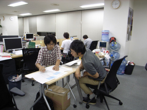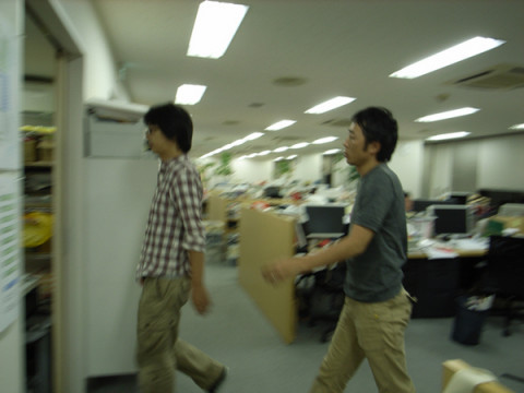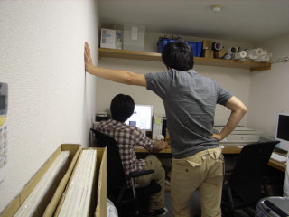 その後もず〜〜〜っと二人は作業をしていたけど、清水さんは、ひじょうに弊社の風景になじんでおられたのでした。