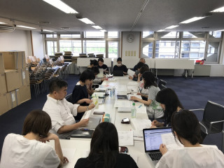 大人数があつまりまして、本部からの相談や進捗などを共有するのです。
