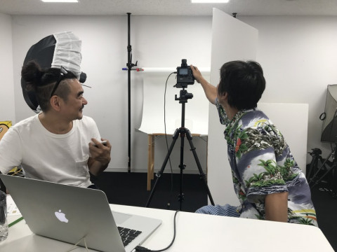 (ではなくて) カメラマンのエリックがハラマキチームの仕事で来ていました。 エリックは香港出身です。 カロリーメイツが香港で たらふくたべていたんだよ、ということを報告しましたら 「なんだよ〜、もしも日程があえば、僕が案内したのに〜!」 と、残念がっていました。 香港は奥がふかいので、エリックの案内してくれる香港は、それはそれは面白い体験です。 香港にはなかなかの大自然があることやあのまちなかのビルにどんな風に人が住んでいるかなどなどふつうだと見られないところを案内してくれるのです。 しかも、実家のお母さんのご飯が劇的においしいです。 「今日は、僕はシャッターを押すだけの簡単な仕事だよ。 ほら、こんな風に。」 と、実演してくれました。 いや、まあ、もちろん、それだけじゃないだろうけど。 2018/05/14 18:08 |