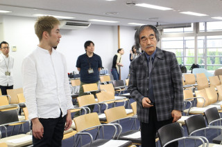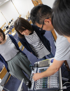 いくつかの風景 今日ももうすぐ始まります。 ほぼ日の学校。 10回めの今夜の講師は、向井万起男さん。 エッセイも書いていらっしゃいますが、お医者さんです。 医学とシェイクスピア、つながるのか、つながらないのか???? 授業準備に余念がない映像チーム。 隙間の時間に津田講師による音響教室が始まっていました。 津田さん、いつもはカメラ担当ですが、実は音響のプロでもあるそうです。 というわけで、ほぼ日の 一方、向井さんはカクシンハンの俳優岩崎MARK雄大さんとなにやら相談中。 そしてキッチンをのぞくと、 さあ、もうすぐ開講です。 2018/05/15 18:17 |