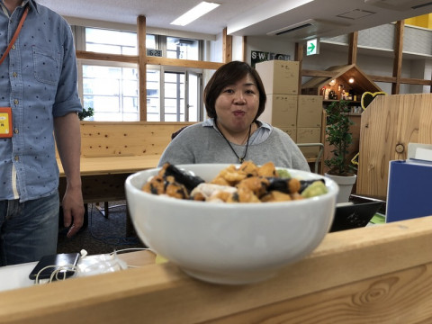 おかきジェンガ ほぼ日の事務所のみんなの机と机のあいだには、数センチ程度の仕切り板があります。 人によってはそこに人形やフィギュア、カレンダーを置いたりしているのですが、さきほどそこに 「おかき」の入った深皿を置きました。 あやういバランス‥‥。 これ、大丈夫ですか? 「おかきジェンガ」 は、はぁ‥‥。 「こぼしたら負け」 なるほど‥‥。 ということで、近くにいたみんなで先ほどから「おかきジェンガ」をたのしんでいます。 けっこうひやひやしますが、ありがたいことに、いまのところ、敗者はなし。 このまま誰も負けないといいのですが。 (なんの製作中でもなくて、すみません) 2018/05/17 16:30 |