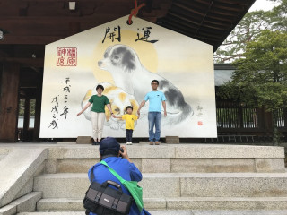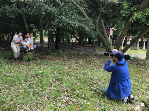 撮影、無事終了です! 奈良の橿原神宮での撮影、先ほど無事に終了いたしました。 撮影場所はもちろん、大賞の決め手となった「切り株」の上! みんなでおそろいの服を着て、これまたファンタジー感あふれる撮影となりました。 お子さんはずっとごきげんで、ゆきえさんファミリーもノリノリで、池田さんのギャグも絶好調で、撮影の間、みんなずっと笑いっぱなし! いやぁ、たのしかったなー。 撮影後は、みんなでお参りもして、ハッピーなエネルギーを頂いた気がします。 雨がやんでくれて、ほんとによかった。 みなさん、またどこかでお会いしましょうね〜。 2018/05/19 15:38 |