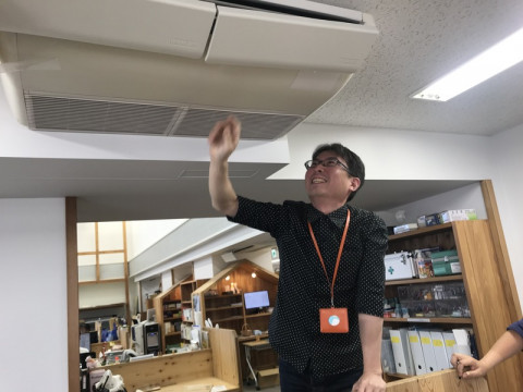 エアコンというもの。 ああ、ボチボチ、エアコンなしでは暮らしていけないジャパンですね。 しかし、無くてはくらしていけないのに人は、やれ直接風があたるだの冷えすぎるだのやいやい言うのです。 昨日も、冷風が直撃しはじめ、わいわいしていたら、すっくと そして、そこをとおりかかった 私は、なにかが壊れているととりあえず彼に言ってみることにしています。 以前にも、会議室の椅子のネジが行方不明になり不安定になっているとはなしたら、 「ネジは何ミリでしょうかねえ……。」と言いつつ、寸法を計測。 後日、彼のおかげで椅子の安定が取り戻せました。 2018/05/23 12:24 |
