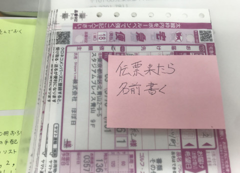 アルバイト奮闘日記。 「生活のたのしみ展」の準備で、手が回らないところがあったので、アルバイトのみなさまのところに行き、 「で、でんぴょうを! 宅急便の伝票をたくさんつくってください。 バタッ。」 と、お願いに行きました。 (一部、表現に誇張があります。) そして、夜になったら、これが机の上にそっと置いてありました。 伝票きたら名前書く そうなのです、昨日は宅急便の伝票が切れており、来たら住所を書かなければならないという、すぐやるわけにもいかないし、わすれてもいけないし、という、それなりに仕事としてはめんどうなことだったのであります。 自分への忘れなメモでもあろうし、誰かが変わってくれた場合の説明メモでもあろう。 なんだか一生懸命さが伝わってまいりました。 ありがとう、ありがとう。 早く仕事してもらえて、助かりました。 あ、予告させていただくのですが、もう一件、宛先を書いていただく仕事が待っているんです。 準備ができたら、騒ぎにまいります。 どうぞ、よろしくお願い致します。 2018/05/23 14:27 |