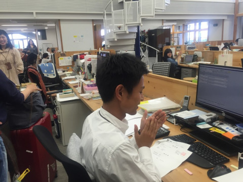 おかえりなさい! パリに行っていた スーツケースを抱えて、空港から直接出社です。 なぜか、そーーっと自席へ向かおうとしていたので、ついつい、 「りかさんが帰ってきましたーー!!!」 と大きな声で言ってしまいました。 みんな、 「おかえりなさーい!!!」 と拍手で迎えます。 いやあ、りかさんがいると、一気に会社が華やぎますね。 ドコノコの 「パリオフ会」は、大成功、大盛り上がりだったそうです。 約900キロ離れたドイツから来てくださった方もいたのだとか。 オフ会の様子は、後日、レポートが掲載されるそうなので、おたのしみに! 2018/05/24 17:37 |