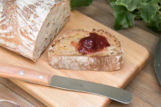 オールドジャーマンナイフはすごい。 Roundaboutの小林和人さんに教えてもらって 販売することを決めたものですが、これがまあ、本当にすごい。 先が丸くて、一見そんなに切れ味がすごいようには見えないのですが、これがもう、すーーっとパンが切れます。 パンくずもほとんど出ませんでした。 「切れ味がすばらしいよね!」 とのこと。 ぼく(田中)は、取材のときに感動して、実家に帰省するときに親へのおみやげにしました。 めちゃくちゃ喜ばれました。 取材に一緒に行った (たぶんきっと買うと思います) やっぱり本当に使える道具はすごいです。 雑談のなかで 「これまで小林さんのお店でいろいろと買ってるけど、ほんとにずっと使えるいいものばかりが置いてあって、すごい!」 と言っていましたが、まさにそういうナイフだと思います。 「おらがジャム・いちご」 (これもほんとうにおいしいです。 "本気めんどくさ仕込み"によるくだもの感がすばらしい。 みんなによろこばれる味のジャム) と一緒に、ぜひオールドジャーマンナイフもチェックしてみてくださいねー。 2018/05/31 13:25 |