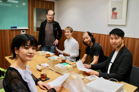 ただいま練習中! 生活のたのしみ展で、シェイクスピア全37作ハイライト上演という無謀ともいえる挑戦をしてくださるシアターカンパニー・カクシンハンのみなさん。 ほぼ日会議室に集まって、その読み合わせです。 広い会場のあちこちで繰り広げられるシェイクスピア劇。 いったいどんな光景になるのでしょうか。 考えるだけでドキドキします。 カクシンハンのみなさんが登場してくださるのは、6月11日。最終日です。 練習風景をのぞきにきたのは、ほぼ日の学校の お、ジャケットの下に見えるのは、カクシンハンのオリジナルTシャツ。 全身で連帯を示しています。 シェイクスピアがつないでくれた絆ですね。 2018/06/04 18:35 |