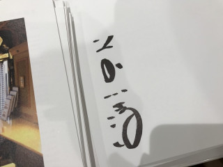 今日もまた。 数日前に見た光景と同じような光景が眼の前に。 先日のの麗しきフォーメーションが、今日もふたたび、やってきました。 しかもしかも、今日のBGMは、録れたてほやほやの今日のリハーサル音源! なんて贅沢な!! 前川さんはもちろんのこと、ミュージシャンの方々も 「かっこよかった〜ん」 と、 今日も今日で、スラスラと進んでいるようです。 前川さんのサインってこんな感じなんですね。 「川を書いてるんだか、サンズイを書いてるんだか、わからなくなる!」 と、ゲシュタルト崩壊を起こしながら書いてくださったそうです。 社内はもうずっとふわふわしている状態です。 もういくつ寝ると‥‥ってゆーか、もう、すぐ、やで! と、変なテンションになっちゃってます。 がんばりまーす。 2018/06/04 21:50 |