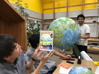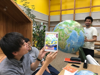 近くでミーティングをしていたアプリ仲間であるアースボールチームが、新機能でお祝いしてくれました。