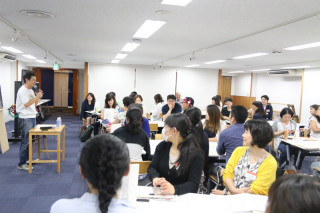 第9期、5限目! 第3回生活のたのしみ展に 「カレーの車」として参加してくれた、カレースターの水野仁輔さん。 今日は水野さんとほぼ日でおこなっているもうひとつのプロジェクト 「カレーの学校」の授業の日です。 1年半ほど前にスタートしたこちらの学校も、いつのまにやら第9期の5回目。 水野さんの軽快なトークや、ゼミの時間などのおかげで毎回みんながすごく仲良くなるのが魅力のひとつなのですが、9期のみなさんもすっかり打ち解けて、今日もいい雰囲気です。 それにしても水野さん、 「生活のたのしみ展」で毎日、ものすごい量のカレーを作り続けていたにも関わらず、まったく疲れた様子も見せず、今日もたのしそうにカレーの話をしまくっています。 さすが、カレースター! ‥‥という感じです。 2018/06/13 20:20 |