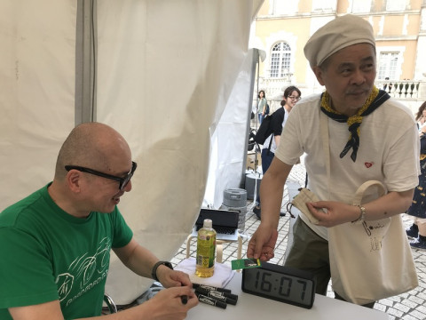 「生活のたのしみ展」を。 「生活のたのしみ展」の余韻、その2をば。 (ああ、荷物片付けなくちゃ!) 「にがおえかきます NIGAOESKY」、二日間でどえらい数の似顔絵を描いていかれた和田ラヂヲ先生、ご自身のFM愛媛の番組、 「和田ラヂヲの聴くラジオ2」でリスナーさんからの 「生活のたのしみ展」に関するふつおたをたくさん読んでくださいました。 こちら、Radikoのタイムフリー&エリアフリーでお聞きいただけるとともに、 podcastでも配信しているとのこと。 似顔絵を描いてもらった方はぜひ聴いてみてくださいね〜。 9日にお店に 「ああッ。 よりにもよってこのタイミングで!」とおっしゃっておられました。 「みてみてカード」をおわたしておりました。 先生の愛猫、シャム朗さんもドコノコにおられますので、こちらもチェックをば! 2018/06/18 15:03 |