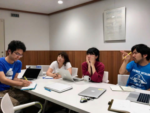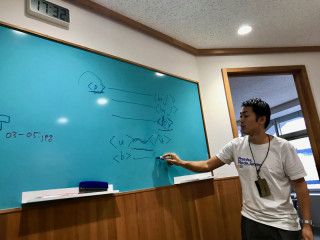 勉強会 今日は、ほぼ日の読みものチームの若者の会で、 「そもそもWEBってどういう仕組みか」というめずらしいミーティングを行いました。 どんぐりの背比べ的ではありますが、若干知識がリードしているという理由で黒板の前に立ってくれた先生は みんな、わりと知らないことが多くて 「なるほど!」 「そういうふうになっているのか」 「スマホはこうか!」 なんて言いながら話し合いました。 話しているうちに、いま抱えている問題点も見えてきたりして、 「うーーーーん」と唸ってみたりもしました。 そしてついに、締めの言葉王の 「でも、最終的には人と人とのコミュニケーションですね」 という締めのセリフをこの場に放ち、おひらきになりました。 「不思議体験ですね」という言葉でその場を締めたことをきっかけに、締めの言葉王として君臨しています。 2018/06/21 18:25 |