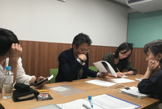 先輩はなぜかろうそく状の照明を持参しておられ、これ幸いと、書籍の内容にふさわしい雰囲気をだして入稿記念撮影となりました。