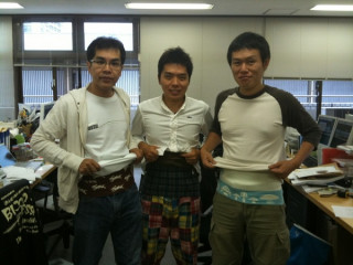 ユーは何サイズ??? 男性は、何サイズのハラマキを巻いているんだろう? と、疑問を持ちまして聞いてみました。 「おれ、S〜」 「え、ぼくFです」 「ぼくはね、昼間はSで、寝るときはFさ」 へえ〜〜。フィット感の好みなんですね。 「あ、そういえば車のシートベルトも ビッタリ締め付けるよ」 「あ、ぼくはゆる〜くしますよ」 「ぼくは、運転に自信がない」 なんでオチつけとんねん! わたしも、わりと田口と同じでゆるめ好きなので、常にSです。 時々XSも巻くけども。 シートベルトとハラマキは、傾向が同じってことぉ??? みなさんのサイズ選びの参考になれば、うれしいです。 (こんなんじゃ、ならないか?) 完売のものも増えてきた ほぼ日ハラマキですが、これからの季節、一枚持ってるといいですよ〜〜〜。 2009/09/04 16:21 |