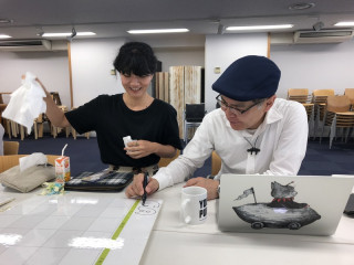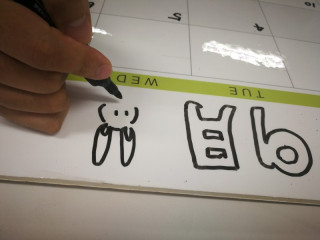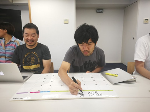 大仕事中の山下さんと稲崎さん 今日は月初めの月曜日なので、商品チームやよみものチームで集まる大会議がありました。 大会議ではカレンダーを書き換えるという、重要な任務があるのですが 「6月」が油性マジックで書かれていて消えない‥‥! しかし、すかさず理系 「水性で上からなぞれば消えますよ」と。 そんな時に水性マジックを握ったのは、 仕事をサボることでいじられる山下さんですが、 「半径30cm以内の仕事ならする!」そうです。 「はい、拭いて!」と指示を受けながら見事にするすると消えました〜。 月の横に書く絵も、菅野画伯がいなかったため今回は テーマは「お月見」。 緊張した面持ちでうさぎに集中しすぎて、月をすっかり忘れていました。 集中して他を忘れちゃうこと、よくありますよね。 2018/07/02 17:06 |