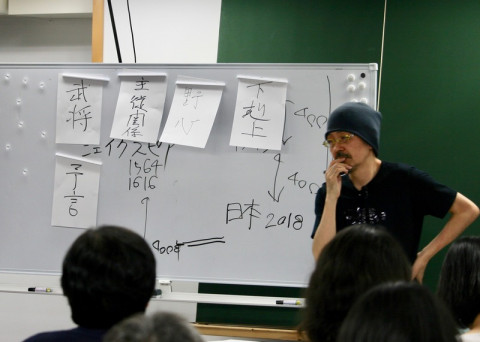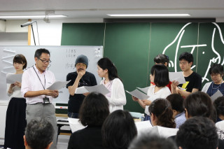 ことばのパンチの連打 むかしむかし、と 「ミライミライ」を交錯させる物語作者ならではのある意味、アクロバティックなシェイクスピア講座でした。 まず示されたのが、 「四つの変奏曲」と題された四種の戯曲。 受講生有志が演じてくれました。 シェイクスピア作福田恆存訳の『マクベス』と坪内逍遥訳の『マクベス』、そして『マクベス』を元にした黒澤明監督の『蜘蛛巣城』。 固有名詞を入れ替えて古川さんがリミックスした4種の脚本は、見分けがつかないくらい同じ空気感をたたえています。 野心を抱いた武将による下剋上の物語である『マクベス』を日本に引き寄せるときに黒澤監督がつかった戦国武将という設定の妙があらためてよくわかります。 これを手がかりに、古川さんは400年前のシェイクスピアは、時間と距離の隔たりを考えると、現代の日本人にとっては800年前の『平家物語』と重なるところがあるのではないか、と語りかけます。 ともに滅びの物語である『マクベス』と『平家物語』。 主人公同士以上にマクベス夫人と平清盛の妻・時子 (二位尼)の強さという共通項があると古川さんは語ります。 予言やスパイ、魔女ともののけ、アーメンと南無阿弥陀仏……さまざまな共通項の最たるものが、有名な『平家物語』の書き出し祇園精舎の鐘の声、諸行無常の響きありと、『マクベス』の幕開き、 「きれいはきたない、きたないはきれい」 だと古川さんは言います。 つまり、すべては変わるという世界観。 わけがわからないし、破天荒だけれど、この世ぜんぶが入っている。 ああ、生きているってこういう感じだよね、全部あるよね。 そう思えるからこそ、極端なドラマが生々しくなる。 聞いていた受講生のみなさん、古川さんが現代語訳した『平家物語』を読みたくなったでしょうね。 そして、こういう理解をもって『マクベス』を読み直したくもなる。 そんな授業でした。 もうひとつ、『平家物語』を現代語訳していたときの古川さんのエピソードが心に残りました。 全13巻のうちの11巻を訳しているとき、胸が痛くて動けなくなったそうです。 2日ほどで痛みは消えたのですが、振り返るとちょうどそのとき、壇ノ浦の戦を訳していたそうです。 「描かれているのは、実在した人々。 現代語訳をすることで、もう一度、この人たちを殺している。 祟られるかもしれない。 そのくらの気持ちで、本気で現代語訳した。 それは小さな供養だったのかもしれない」 古典を現代に引き寄せるとはどういうことなのか。 その一端を感じることができました。 2018/07/10 22:37 |