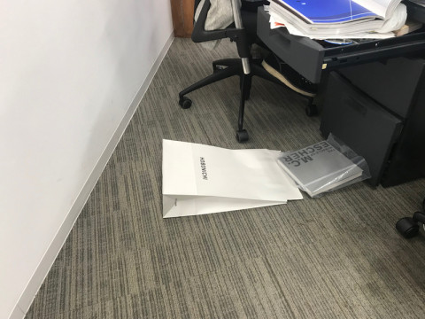 目を離していたら 記憶をたどれば半年前ぐらいまでは、私はおっくんの近くの席でした。 このたび久しぶりにおっくんの席に近寄って驚きました。 つまりその、混沌さに拍車がかかっていて‥‥。 書類はどこにあるのかわからない、ジュースが数本、机の上にあり、足もとには紙袋の結界まで引いてありました。 「いや‥‥端っこの席になったんで、だれにも迷惑かけないからいいと思って」 ちょっと気が遠くなるような机でしたが、おーたと私は無事たのみごとをして席に戻りました。 おっくんの仕事がひと段落して、またきれいな席に戻りますように。 2018/07/12 16:24 |