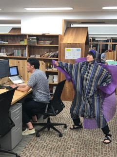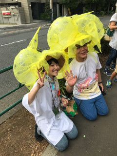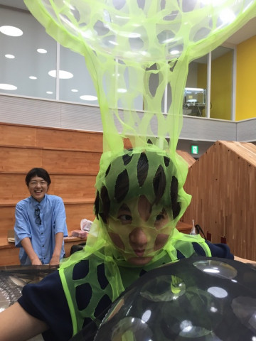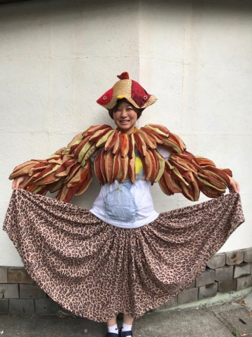 姫の勇姿。 夏の恒例となってきているTOBICHIの ひびのこづえさんイベント。 おかげさまで、たくさんの方におこしいただき、ご参加いただき昨日終了しました。 さて、このイベントのワークショップに参加したかたがたを応援してくれる「姫」のことをみなさんご存知でしょうか。 ひびのこづえさんがつくられたすばらしい衣装をまとい、その衣装に負けないほどパワフルな動きをしてくれる「姫」です。 いつもおもにTOBICHIのツイッターでその様子が披露されておりました。 一昨年と昨年「姫」が社内でリハーサルをしていたときのすごくたのしい気持ちが思い出されたので昨日、TOBICHI前にあらわれたバナナ姫とバナナ姫のおつきの?森の妖精さん、そして一昨年と昨年の「姫」の写真をおひろめさせてください。 最後の写真にこのすばらしい衣装をつくったひびのこづえさんの笑顔がうつっているのもうれしいです。 2018/07/23 11:55 |