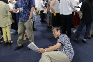 シェイクスピア! ほぼ日の学校シェイクスピア講座をいっしょにつくりあげてくださったみなさん。 本当にありがとうございました。 皆勤の方、一回だけ来られなかった方、いろいろでしたが、みなさん本当に熱心に通ってくださいました。 最後まで笑いと発見と新しい体験に満ちた講座でした。 4日前の打ち合わせで決まった最終講義の中身は、2時間で、全員で 「夏の夜の夢」を演じきること。 河合祥一郎さんが人智を超えた速度でつくってくださった2種類の台本で、河合さんと木村龍之介さんが演出を担当。 河合さんが床から演出する一幕もありました。 99人の受講生に加えて、講師のみなさん、 翻訳家の松岡和子さんが自らの脚本でばったりと倒れたままの体を張った演技。 「塀」の役があたった古川日出男さんがひとこと「Hey」とキメるなど、贅沢このうえない舞台でした。 それもこれも、ここまでの13回の講義の蓄積があったからこそ。 何人もの受講生の方が、 「読んだことなかったけど、シェイクスピアにはまった」 「おもしろかった!」と言いながら帰っていかれました。 感謝、感謝、感謝。 2018/07/24 22:25 |