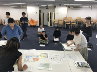 この直前まで、会社全員であつまるミーティングがありまして、そのあとに15分くらいで、ちゃっとやろう、ということで、オールスタンディングで会議をしていたのですがさまざま白熱し、どんどん人が座っていった、というのが、この謎スタイルの会議の理由でした。