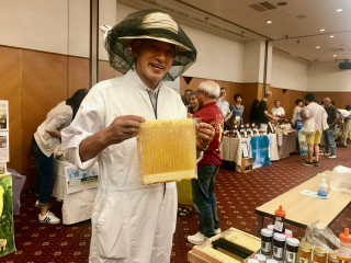 はちみつフェスタ こんにちは、はちみつ探検隊のSです。 今日私は銀座で開催されている はちみつフェスタ2018に行ってきました。 ほぼ日のはちみつのお店「日本の花」でお世話になっている藤原誠太さんもいらっしゃいましたよ〜。 (いつものように巣箱を持っていた。 しかもこの巣板、蜜いっぱいで重かった) 1枚めの写真が、今日わたしが味見しまくって、購入したはちみつです。 右から、パキスタンのなつめのはちみつ、ロシアの菩提樹のはちみつ、ロシアのアラリエのはちみつ、ブルガリアのバラのはちみつ、いちばん左がギリシャのタイムのはちみつです。 すっごい迷って厳選してこの5つ! 日曜までやっていますので、はちみつにご興味ある方、ぜひ行ってみてください。 2018/07/27 20:23 |