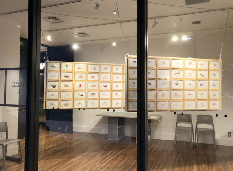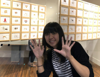 「たべびと原画展」開催! 先日、Cafe&Meal MUJI新宿で開催中のあーちんの「たべたい、かきたい」展をこの製作中でご紹介したところですが、その展覧会との連動企画、 「たべびと原画展」が、本日31日(火)より渋谷のヒカリエではじまります。 昨夜、会場に陣中見舞いに行くと、あーちんとあーちんママ、この企画をプロデュースされた翠川さんの3人で、まさに設営の真っ最中。 中学3年間で描いた「たべびと」のたべものの絵は、全144点。 そのうちの140点をパネルに飾って、上から吊るすとのことで、なかなか、圧巻。 おなかすいた〜って、言いながらももう少しなんで設営がんばりますって、ガッツポーズのあーちんをパチリ! そして、140点の作品のパネルは、無事、天井からつるされて、ギャラリーの大きな窓の外からも、とても目立つ、展示が完成しました。 この「たべびと原画展」は渋谷ヒカリエ8Fのaiiima(アイーマ)2で7/31(火)から8/5(日)まで開催。 時間は11時から20時まで。 あーちんは、下記のあいだ在廊してます。 7.31(火) 12:00-17:00 8.2(木) 14:00-18:00 8.4(土) 14:00-18:00 8.5(日) 14:00-18:00 あーちん在廊中はポストカードを購入いただいた方にあーちんがサインをしてくれるようですよ。 「たべびと」の連載のページでも、1点1点、とても細かなディテールとあーちんの「たべもの」への愛情を観ることができましたが、実際の原画からは、あーちんの筆使いを感じることもできますよ。 あーちんからも、 「みなさん、観にきてくださいねー。 待ってまーす。」 2018/07/31 10:01 |