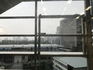遅れて強烈な雨が、ザーッと降り出しています。