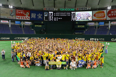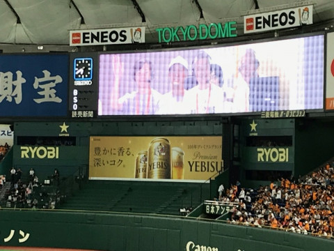 また、野球で遊びましょう! 7回目の開催となりました東京ドームでの「野球で遊ぼう。」イベント。 おこしいただいたみなさまありがとうございました! 少し前まで真剣勝負をする選手がいたグラウンドで笑い、走り、童心に帰ってしまう気持ち、乗組員たちもまったく同じです! みんながグラウンドに降りてくるすこし前にジャビットさんもうれしそうに記念撮影をしていたんですよ。 さて、ほぼ日ブースでお配りしました紙に記されている集合写真のダウンロードURLにさきほど写真がアップされましたので、ぜひ記念にダウンロードしてください。 今日はどうもありがとうございました。 またきっと来年!野球で遊びましょう! 2018/08/17 23:00 |