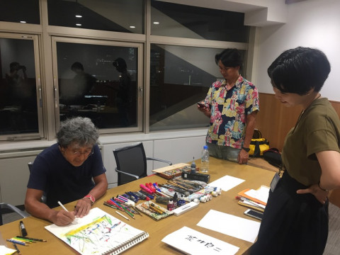 荒井良二さん! 先日、絵本作家の荒井良二さんがほぼ日にやってきました。 9月1日からのほぼ日手帳のイベント 「書く!」展のための取材で、いつもつかっている仕事道具(の、ごく一部)を持ってきてくださったのです。 荒井さんがいつも絵本を描くときに使っている色鉛筆やマジック、マーカーなどを見せていただきました。 ぜひ、「書く!」展での展示をたのしみにしていてくださいね。 (後日、コンテンツにもなる予定です!) 取材中も、 「たとえばこんなふうに鉛筆を持つとね‥‥」とささささーっと、絵を描いてくださった荒井さん。 いつも、こんなふうに立って描いているそうです。 荒井さんといえば、ほぼ日手帳2019の中でももっとも長い名前のカバー、 「いつだったかわすれたけどあれたのしかったね」もとってもとってもかわいいですよー。 このカバー名も、荒井さんが 「ねこの適当さが出ればいいなあと思って」とつけてくださったものなんです。 ちなみに、9月1日からは、荒井さんが芸術監督をつとめる みちのおくの芸術祭「山形ビエンナーレ」がはじまるので、いまおおいそがしなのだとか。 「山のような」をテーマに、すっごく大きな椅子や、かわったかたちのこけしや、荒井さんたちみずからが作ったレコードや‥‥いろんなものを準備中とのことです。 たのしそう! 9月は連休も多いし、遊びにいきたいなあ〜。 荒井さん、素敵なカバーとお話を、ありがとうございました! 2018/08/27 14:11 |