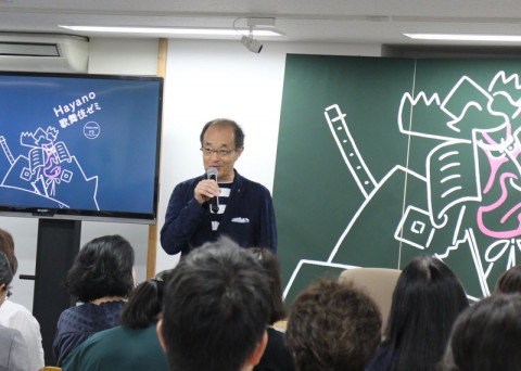 少年の20年の歩み 伝統芸能の世界にこんな若者がいる! そんな驚きが教室に満ちたような気がしました。 ほぼ日の学校Hayano歌舞伎ゼミ第3回の今夜は、歌舞伎役者の中村梅丸さんをお迎えしました。 編集者のお母さんに連れられて2歳のときに初めて観た歌舞伎。 ことばも十分わからないのに、その魅力にひきこまれ、縁あって日本舞踊を習い始め、8歳で歌舞伎の初舞台を踏んだ梅丸さん。 10歳のときには太刀持ちの役で35分間、ひたすら舞台で座り続けました。 「好きじゃないとできませんよね」 と、笑いながら話してくれましたが、最初から舞台が好きで好きでたまらなかった様子がよくわかります。 小学生のとき、大きくなったらなりたいものは、ウルトラマンか電車の運転士、あるいは歌舞伎役者だったそうです。 その夢を現実のものとし、さらに師匠・中村梅玉さんの後ろ姿を追って精進をつづける若き役者のことばからは、伝統を背負う誇りとともに、本当に舞台に立つことが好きだという純粋な喜びがあふれていました。 8月には、漫画を原作とした新作歌舞伎NARUTOにサクラ役で出演するなど役の幅を広げて活躍する梅丸さんですが、やはり大切にしたいのは古典演目で、師匠の得意な義経をやってみたいと抱負も語っていらっしゃいました。 落ち着いた口調で、しっかりと自分の考えを語る梅丸さんはまだ21歳。 これからのさらなる活躍が楽しみです。 もうすぐお誕生日なので、最後に、受講生のみなさんとちょっと早いお祝いをしました。 2018/09/10 22:36 |