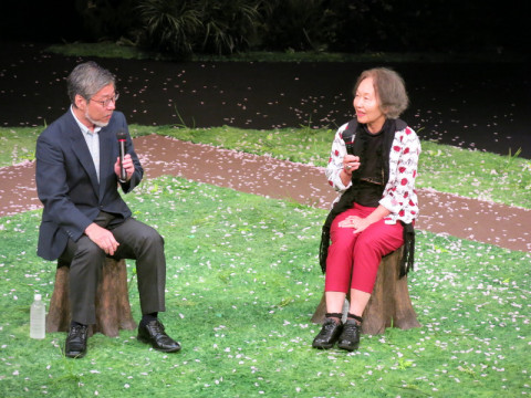 アフタートーク 河合祥一郎さん新訳・演出のシェイクスピア劇「お気に召すまま」を彩の国さいたま芸術劇場で観てきました。 歌あり、踊りあり、駄洒落あり。 恋する気持ちが連れてくる幸せ気分いっぱいのお芝居です(17日まで)。 5月の「シェイクスピアの音楽会」で耳にした曲もいくつか流れました。 Luther ヒロシ市村さんと山崎薫さんの美声に酔いました。 終演後、河合さんと翻訳家の松岡和子さんのアフタートークもありました。 なんだか、ほぼ日の学校シェイクスピア講座の延長授業みたいです。 松岡さん:おもしろかった! アーデンの森をイメージして、舞台をぐるりと囲む客席を森に見立てたのが、すてきでとても効果的だと思いました。 河合さん:客席と交流しながら、みなさんに魔法をかけたいと思ったんです。 松岡さん:1人2役のダブリングもすごく効いていたと思います。 兄を追放した公爵と追放された公爵を演じ分けた鳥山昌克さん。 宮廷道化のタッチストーンと森の道化ともいうべきジェイクィズの両方を演じた釆澤靖起さん。 召使いのアダムと羊飼いのコリンを演じ分けた小田豊さん。 それぞれに、鮮やかで、スリリングで、すごいと思いました。 タッチストーンとジェイクィズの1人2役って初めて観ました。 河合さん:世界初の演出です(笑)。 松岡さん: 「お気に召すまま」って、宮廷と森のコントラストがポイントだと思うのですが、太田緑ロランスさんが演じたロザリンドの「女」と「男役」の対比や、玉置玲央さん演じるオーランドーが、それに気づいているのか、いないのかといったところもおもしろかった。 「演劇の約束事」を破るか破らないのか、すれすれのところをいってるのが、シェイクスピアらしくておもしろいですよね。 お芝居の余韻が残る中で語り合うお二人の姿は、夢のつづきのようでもありました。 2018/09/14 20:47 |