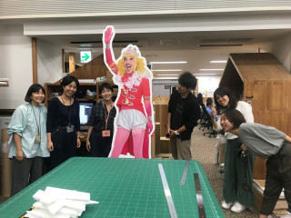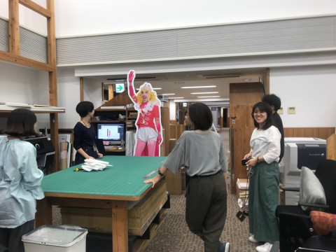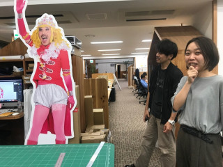 でか。 ひともまばらな社内ですが、巨人があらわれました。 等身大じゃないパネル。 等身大じゃない派手なパネル。 (え? 等身大なの? でかくない?) 例のTOBICHI用のものだそうです。 「仕事の都合で、これだけ早く仕上がってしまったのです。 9.28(金)にTOBICHIはじまるまで社内に置いておく予定なんです。」 結局その場にいたみんなで相談して、ピンクで派手で、めでたい気もするから、目立つところにちゃんと置いておこう、というはなしになりました。 これは、なんとかのなんとかの間に洗濯というようなことですかね。 2018/09/20 20:18 |