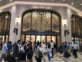 阪急うめだ本店前で指定された入り口がさっぱり分からずうろうろしていたら、摂州さんが開店を待っていたのです。