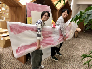 TOBIさんのひどい目。展! あさって9月28日(金)から、です。 (展覧会の詳細はこちらに) ただいま絶賛、ほぼ日のデザイナー陣が展示物を制作してくれています。 できあがったものから、写真のように、こんどはTOBICHIチームがプチプチにくるんで搬入してくれてます。 TOBIさんの在廊は、初日9月28日(金)と29日(土)の14時〜18時くらい。 タイミングが合えば、きっと、ご購入いただいた本やグッズにサインしてくださいますよ。 おすすめは、おひとりさま一回まわせる、無料のカプセルトイ。 中に入っているのは、TOBIさん監修 「絶対に伝わるフランス語講座」です。 これ、おもしろいと思うので、いらしたら、ぜひ、まわしてって下さい。 TOBIさん、この展覧会にあわせてレ・ロマネスクの最新グッズをつくってくれていたみたいなんですが、今のところ絵型しか届いていません。 (細長い画像) Tシャツとバンダナはわかるけど、いちばん下がどうも「マグカップ」らしいんですが、これが、いまいちわからない! でも、明日にはわかるはずです。 納品されるので。たのしみに待ちます。 そうそう、その意味で言いますと、あす27日(木)18時〜19時は、会場で「前夜祭」を執りおこないます。 もちろんTOBIさんも、いらっしゃいます。 というか、できたてホヤホヤの新商品を、自ら納品しに来てくれるのです。 で、ですね、その‥‥商品の袋詰作業等に、その場のみなさんのお力を、ちょっとだけお借りできたらと思います! みんなでワイワイしながら展覧会場の「最後のしあげ」をして、TOBIさんを囲み、TOBIさんの好きな「牛乳」でカンパイし、翌日からの展覧会を迎えたいです。 牛乳がダメな方には、お茶等も、ご用意しておきますね。 ともあれ、会期は3日間。みじかいです。 ぜひいらしてください。待ってます。 2018/09/26 19:21 |