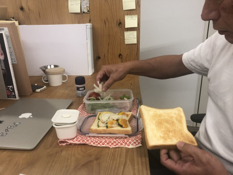 タナカのランチ(10/15) ひさびさに 今日は蒸したかぼちゃに玉ねぎとレタス、メインは鴨肉のソテーという見た目もおしゃれなサンドイッチでした。 (タナカは、ランチは 毎日サンドイッチと決めています) 「でね、これをかけるんです」 と言って見せてくれたのは、 バルサミコ酢とはちみつを合わせて煮詰めた特製ソース! とても良い香りがしました。 「バルサミコ酢って、ときどき酸味がきつかったりするじゃない。 でもこうやって食べるとマイルドになっておいしいよ」 私も真似してみよう。 2018/10/15 17:38 |