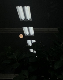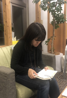 と打ち合わせのためにソファ席にきたら、窓の外に、なにかハッとするものが‥‥それはとっても大きな月でした。