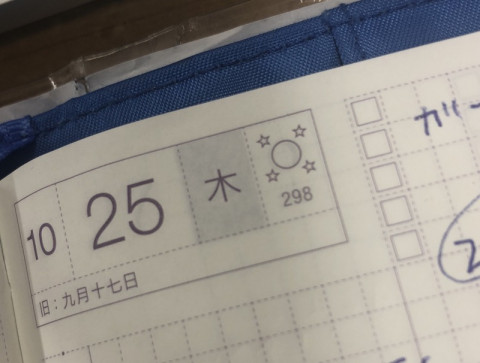 ほぼ日手帳の今日のページをひらくと、おお、やっぱり満月のマークが!