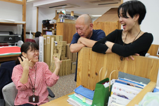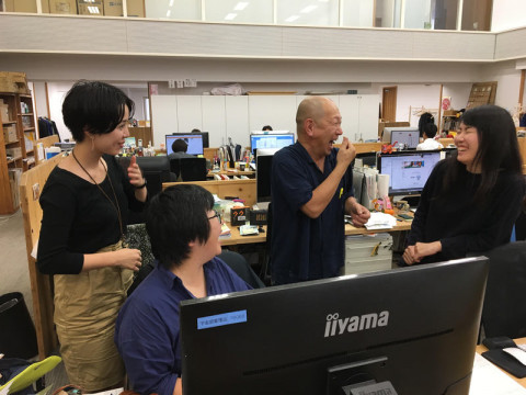 こっちでも 今日はなぜか社内のあちこちで 「取り囲み打ち合わせ」がくりひろげられています。 まず、私の目の前でハワイから戻ってきたカロリーメイツの3人が 的確なハワイ情報のお礼だったようです。 と思うと、こんどは私の隣で、 「ちょっといいですか」となんだか迫力のある声をかけていました。 何の話かは知りません。 するとつづけて、カロリーメイツが去ったあと、 なにやら企画の相談をしているようです。 今日は「囲み」の日だなあと思っていたら、私もみんなに取り囲まれました。 (向かいの席のコマタさん撮影) なんだか、あちこちで楽しい相談が繰り広げられています。 2018/11/06 13:52 |