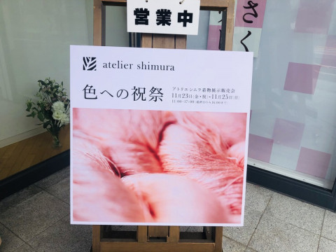 アトリエシムラ 「色への祝祭」開催中です! 2周年を迎えられたアトリエシムラさんの展示販売会が、成城学園前「さくらさくギャラリー」にて開催されています。 今回は、「色への祝祭」がテーマ。 日々、植物からいただいた色で糸を染め、お着物やストールなどを制作されているアトリエシムラさん。 色をいただくことは、当たり前ではなく、都度喜びをも、もらっている。 その感謝の気持ちを込めて、作品を制作されたそうです。 写真ではお見せできないのですが、会場に入ると、藍、刈安、栗、紫根などさまざまな植物の色がなんともうつくしく織り合わさったお着物の数々が並んでいました。 こんなに近づいてもいいのかというくらい、近くで見ることができ、その色ひとつひとつを丁寧に味わうことのできる空間になっています。 遠くでみると無地に見えたものも、近くでみると細かく格子状になっていたり微妙な色のグラデーションになっていたり。 すーっと引き込まれて時間を忘れてしまいます。 会場には、アトリエシムラのみなさんがいらっしゃいますので、制作にまつわる裏話も伺えるのが、またたのしいです。 この展示販売会は、明日まで。 (お知らせがギリギリで、すみません!) 近くの 「アトリエシムラ Shop & Gallery」では、志村宏さんのワークショップも同時開催しています。 参加募集は終了していますが、見学は自由とのことですので、ぜひあわせて行ってみてくださいね。 はー、成城をうろうろとしましたが今日は天気がよくて気持ちいいですね! みなさま、良い週末をお過ごしくださいー。 ーーーーーー ■アトリエシムラ 展示販売会「色への祝祭」 会場 さくらさくギャラリー 東京都世田谷区成城 2-15-1 11月23日(金・祝)〜11月25日(日) 11:00〜17:00(最終日のみ16:00まで) ■アトリエシムラ 2周年記念ワークショップ会場 アトリエシムラ Shop & Gallery東京都世田谷区成城2-20-7 11月24日(土) 13:30〜15:00 染料:蓮(はす) 11月25日(日) 10:30〜12:00 染料:茜(あかね) ーーーーーー 2018/11/24 13:43 |