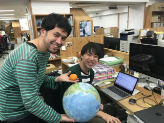 桃じゃなくて、みかんを持って、そわそわしている人がいます。