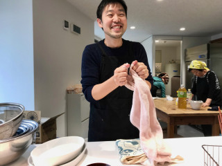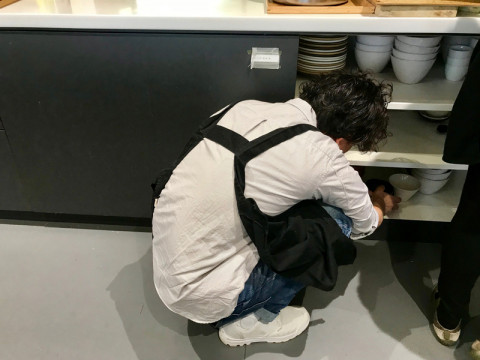 オカムラさんは、エプロンのボタンもかけず、皿を運ぶ力仕事をもくもくとやっておられました。