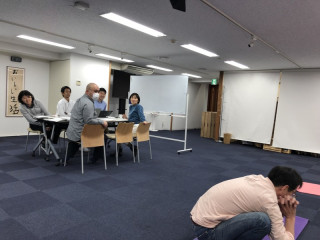 今日は会社の大ホールにて、ミーティング中だった経理チームの横で、部活動。