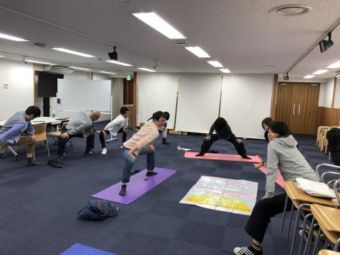 興味を持ってもらえたらいいな‥‥と、大きめの動きでがんばっていたら、さすが好奇心旺盛な弊社経理チーム、途中から一緒にやってくれました。