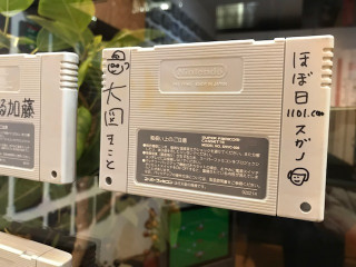 名前書きませんか? TOKYO PIXEL.にいるスガノです。 大図さんが急に 「スガノさん、カセットに名前書きませんか?」 と言ってきました。 え? いいの? 「MOTHER2のゲームカセットが、ちょうどありますから。 サインしてくれたら、ここに展示します」 展示なんて、おそれおおいです。 「いいんです、糸井さんの代わりに」 だめですだめです。 「ぼくもいっしょにしますから」 ふたりだったらいいや、と、大図さんといっしょにサインしちゃいました。 よ、よかったのかな? 2018/12/14 18:00 |