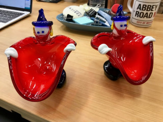 ピエロの交換 打ち合わせから会社に戻ったら、席替えが終わっていました。 私がアルバイトのなっちゃんに託した荷物がNEWシートにきれいにおさめられていた。 新しい席でもがんばります。 永田さんと、恒例のピエロの交換をしました。 永田さんと私は同い年、合計100歳記念の高齢のピエロの交換です。 つぎに交換するときはどちらかの誕生日が来てしまいます。 交換をするときは、いつも ほぼ日の卒業生、元木さん、元気ですか。 私たちは、あなたがピエロの一体を割ったときのものまねをいまも、年に3回してるんですよ。 ものまねしてさらに「わははは」と笑うんですよ。 見てますか。 2012年のピエロの交換 2013年のピエロの交換 2013年のピエロの交換 2014年のピエロの交換 2014年のピエロの交換 2016年のピエロの交換 2017年のピエロの交換 2017年のピエロの交換 2018年のピエロの交換 2018年のピエロの交換 2018/12/21 17:46 |