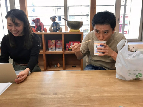 時間がない! ちょっとまって。 西田くん、ダイエットしてんじゃなかったっけ? 「言っときますけど、ぼくはカップラーメンを月に一度くらいしか食べませんよ」 なにが言っときますけどなのかがわからない。 「だったら、それがなぜ今日なんですか?」 「時間がないから」 うん、そりゃしょうがないね。 正直、今日ばかりはわたしも時間がない。 「キャーーほんと? じゃあ、このミーティングを20秒で終わらせます!」 20秒はちょっと言いすぎでしょう。 よく考えたら、私たちは正式な出社は明日までなのでした。 今日中にあるていどの目処をつけねばね。 ちなみにこのミーティングは、55分かかりました。 ミーティングが終わるころ、西田くんはカップ麺をすっかりたいらげお茶をすすっておりました。 2018/12/25 16:19 |