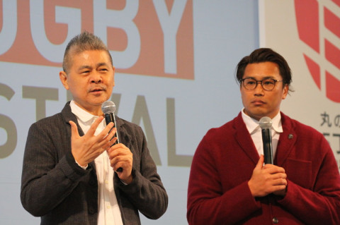 糸井のラグビートーク 今日から東京・丸ビルで開催されている、 「丸の内15丁目PROJECT MARUNOUCHI RUGBY FESTIVAL」におじゃましてきました! ラグビーワールドカップ2019日本大会を前に、さまざまなテーマでラグビーの魅力を体験できるイベントです。 架空の街「丸の内15丁目」に作られた映画館の臨時館長を務めることになった糸井重里は、ラグビー元日本代表でラグビー解説者の大西将太郎さんと会場でトークをおこないました。 ふたりの話を大まかにまとめたので、イベント期間(1月20日まで開催)に映画「BY THE RUGBY」を会場で観られるかた、ぜひ足を運んでみてくださいね。 ーーーーー 糸井 「丸の内15丁目PROJECTは、ぼくが仲間に入れてもらえたぐらいですから、にわかを大事にしてくれてありがたいです。 ワールドカップの日本開催にあわせて昔からのファンのみなさんといっしょにたのしめることが嬉しいです。 このイベント期間には、ワールドカップの第1回から第3回までを短くまとめた映画を会場で観られます。 ぼくがおもしろいなと思っているのは、ラグビーの中にある言葉です。 プレー中は肉体がぶつかりあって言葉にならないことが起こっているのに、そこには言葉があるんですよ。 この映像制作やイベントに関わるみなさんも、ラグビー愛で集まっているんですよね。 ラグビーのことになると気持ちと時間と技術の持ち出しで参加してくれている人ばかりだと思うんです。 ラグビーを愛する人たちの気持ちが、この映画のナレーションを担当されている濱田岳さんの声にも感じられて嬉しくなります。 ぜひたのしみに映画を観てください。 『この試合を日本でやるんだ!』というのは、けっこう大事件だと思いますよ」 大西さん 「ラグビーをやっていた身からして、ラグビーの入り口のせまさはよくわかります。 自国開催というタイミングでラグビーを好きになってくれる人が増えるのは選手たちも感謝しているんですよ。 たくさんの方の協力があってラグビーを盛り上げようとしているのはラグビーそのものじゃないでしょうか。 みんなが体を張って、ボールをつないでトライまでいくのはラグビーに通ずると思います。 この会場で上映する映画は、1987年から1995年におこなわれた大会で、ぼくが小さい頃に観ていた映像なんです。 この大会を観て自分も出場したいと思ったし、今観ても鳥肌が立つようなプレー! こどもの僕がテレビで観て興奮した大会が9月20日から日本で開催されます。 みなさんの心に残る大会になればいいなと思います」 「MARUNOUCHI RUGBY FESTIVAL」の開催は1月17日(木)から1月20(日)まで。 丸ビル1F・マルキューブを中心に、さまざまなジャンルでラグビーの魅力を体験できますよ。 日替わりでラグビー芸人によるたのしいトークがあったり、 「ほぼ日」にもご登場いただいた 中竹竜二さんによるビジネススクールも予定されているので、ぜひチェックしてみてくださいね。 「丸の内15丁目PROJECT MARUNOUCHI RUGBY FESTIVAL」 (イベントに登場予定だった田中史朗選手は体調不良のため欠席となってしまいました) 2019/01/17 20:18 |